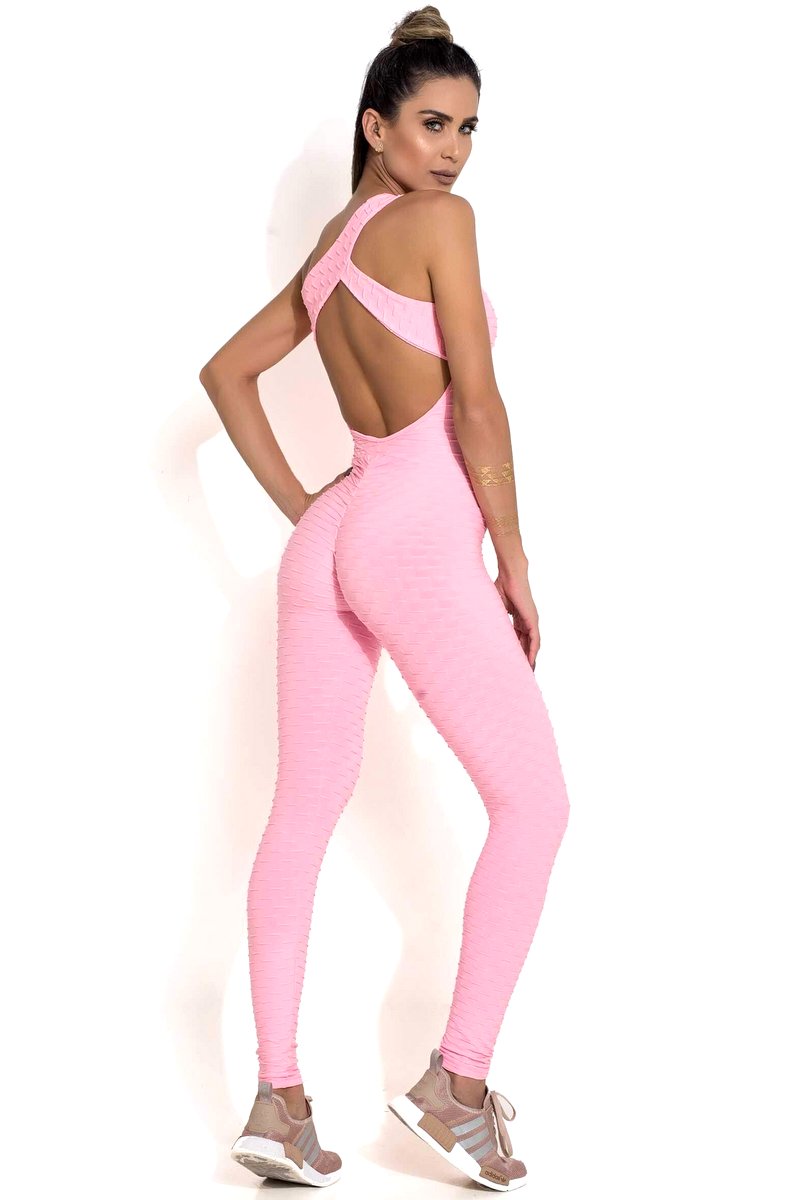 Tropical Light Pink Neon Scrunch Jumpsuit